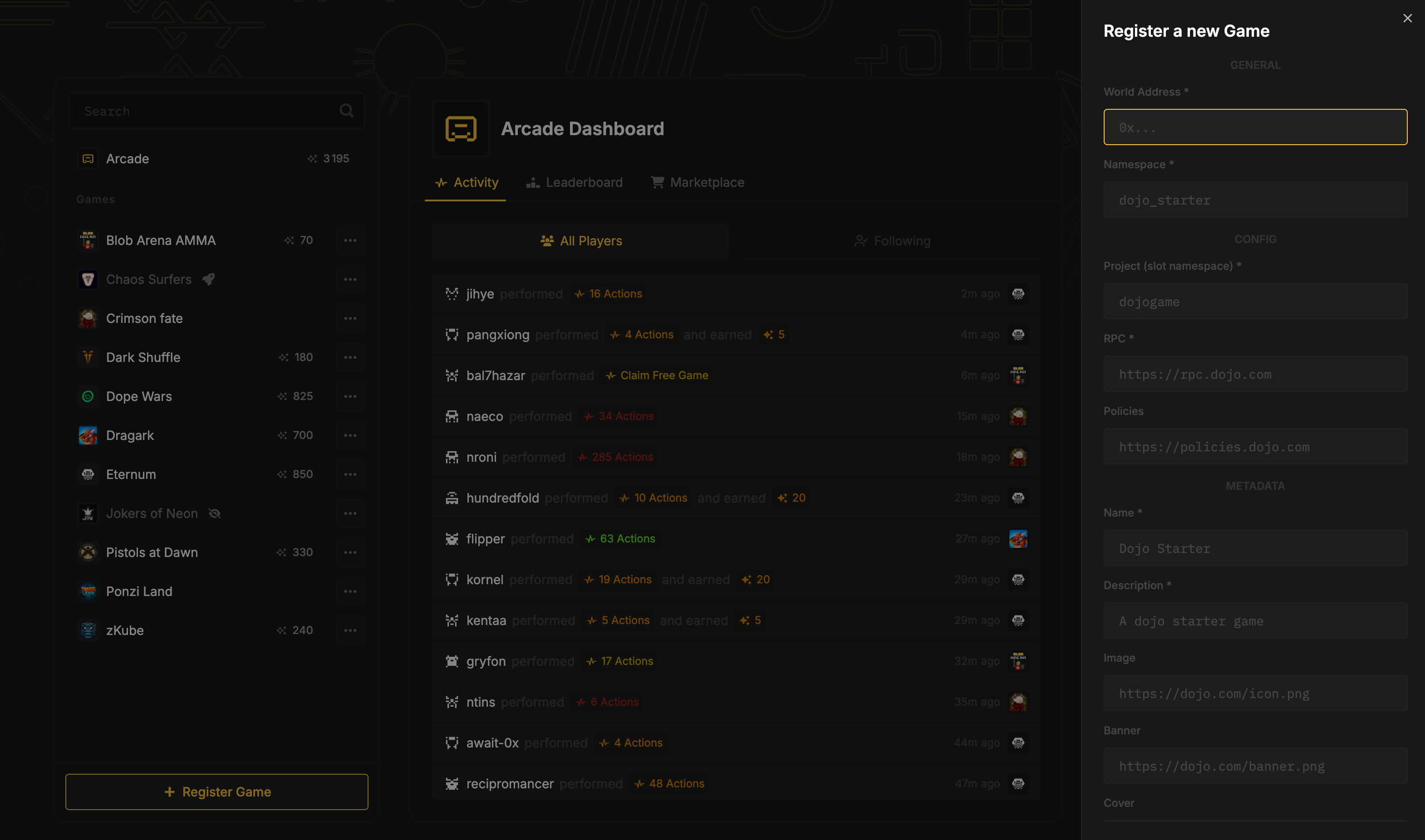 • A unified hub for all your favorite onchain games